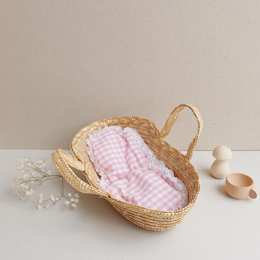 Play kids Moses Izta with cushion-Vichy Pink for dolls
